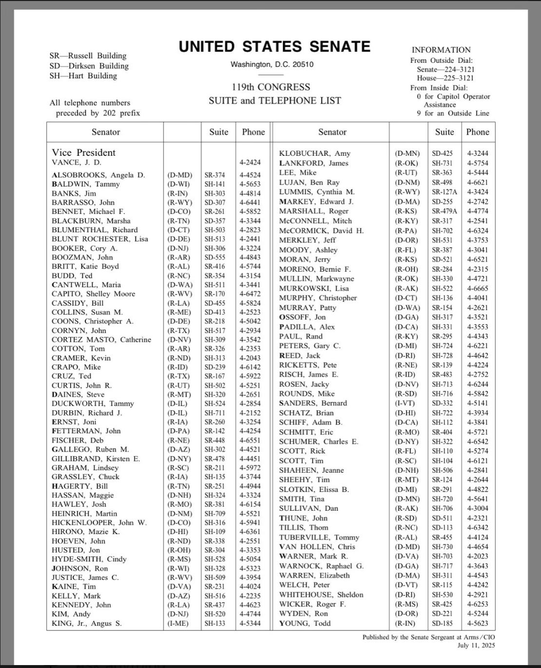 Below is a list of phone numbers for each U.S. Senator. While Senators are elected to represent constituents from their own states, you are not limited to calling only your Senators. You may contact any Senator to state your outrage and your expectations regarding ICE funding.